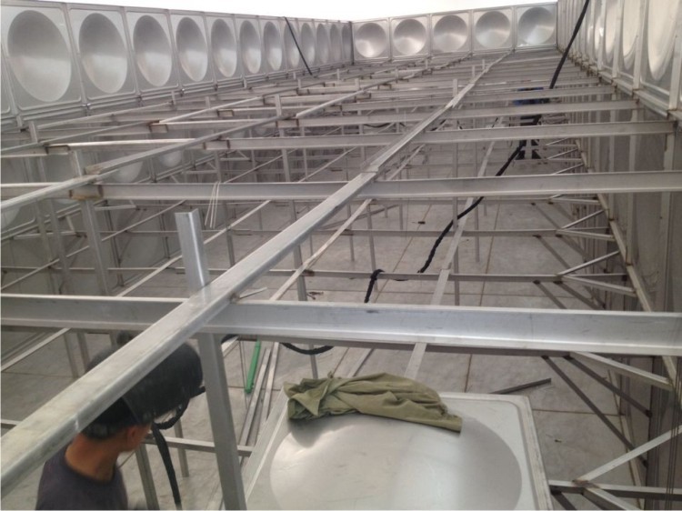 5.安装内部支架:根据水箱的尺寸找到内部支架的数目和尺寸。采用绑带板测量绑带在电缆上的固定位置,展开拉丝,打孔,指向和拧紧,以便如果箱体与支架之间的误差较大,则可以通过调整螺栓的拧紧程度来调整误差的尺寸,直到误差调整为*小为止。